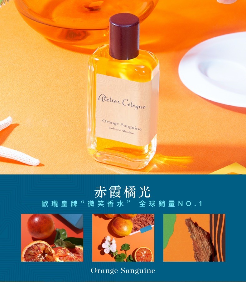 皇牌赤霞橘光Orange Sanguine 精醇古龍,被稱之為“微笑香水” 。 活力鮮橙沁入甜潤天竺葵和醇厚檀香木,讓人不由自主展露會心微笑 。