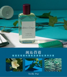 清雅麝香系列純沁苜蓿Tréfle Pur精醇古龍,清爽綠意的草木香調 。酸澀苦橙葉和埃及羅勒浸潤涼意,伴隨清冽雪松木煥發朦朧生機 。